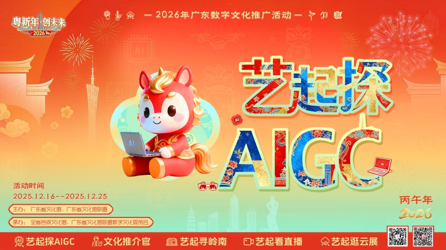 同时还将结合“艺起探AIGC”活动,鼓励群众结合广东文农旅商等元素开展创作,激活群众的创造活力。此外,活动通过全省文化馆新媒体矩阵联动展播,让每一位参与者都能成为岭南文化的“推介大使”。