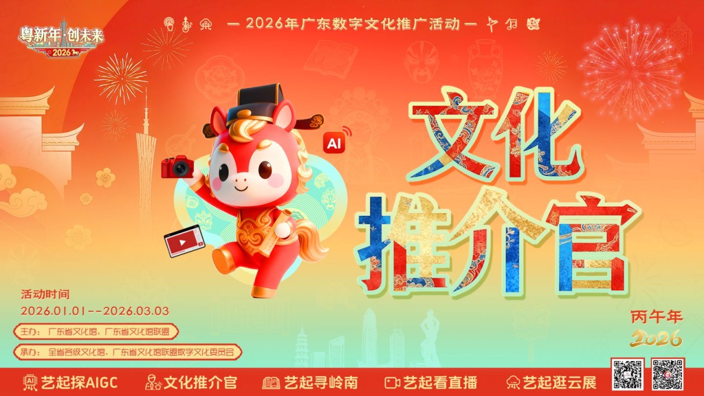 2026年广东数字文化推广活动已正式启动,诚邀广大群众共赴粤新年之约,共享指尖“文化盛宴”,共品岭南文化之韵。
